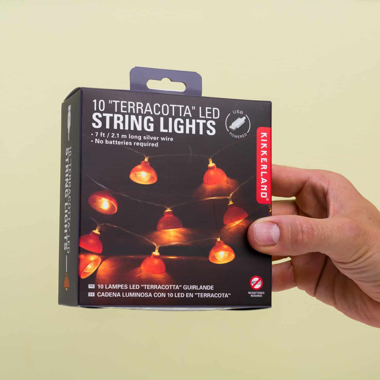 Wil jij je werkplek of slaapkamer opvrolijken? Dat kan met het Terracotta lichtsnoer van Kikkerland. Door de lampjes met lampenkapjes in terracotta kleur krijg je direct een heel andere sfeer in je kamer. En je hoeft nooit bang te zijn voor lege batterijen: het lichtsnoer heeft namelijk een USB-aansluiting. Je plugt de lampjes dus in je laptop of gebruikt hem met een adapter in je stopcontact. In totaal heeft het lichtsnoer tien lampjes.