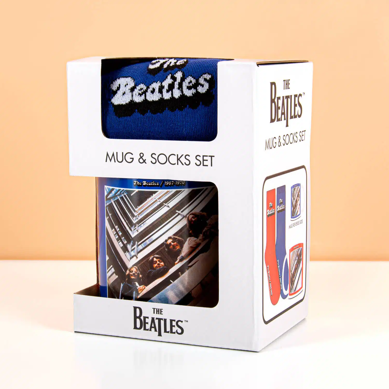 Fan van The Beatles? Dan is de The Beatles mok en sokken cadeauset precies wat je zoekt. De set bevat een mok en een paar sokken met de bandnaam The Beatles aan de zijkant. De ene sok is blauw, de andere rood.