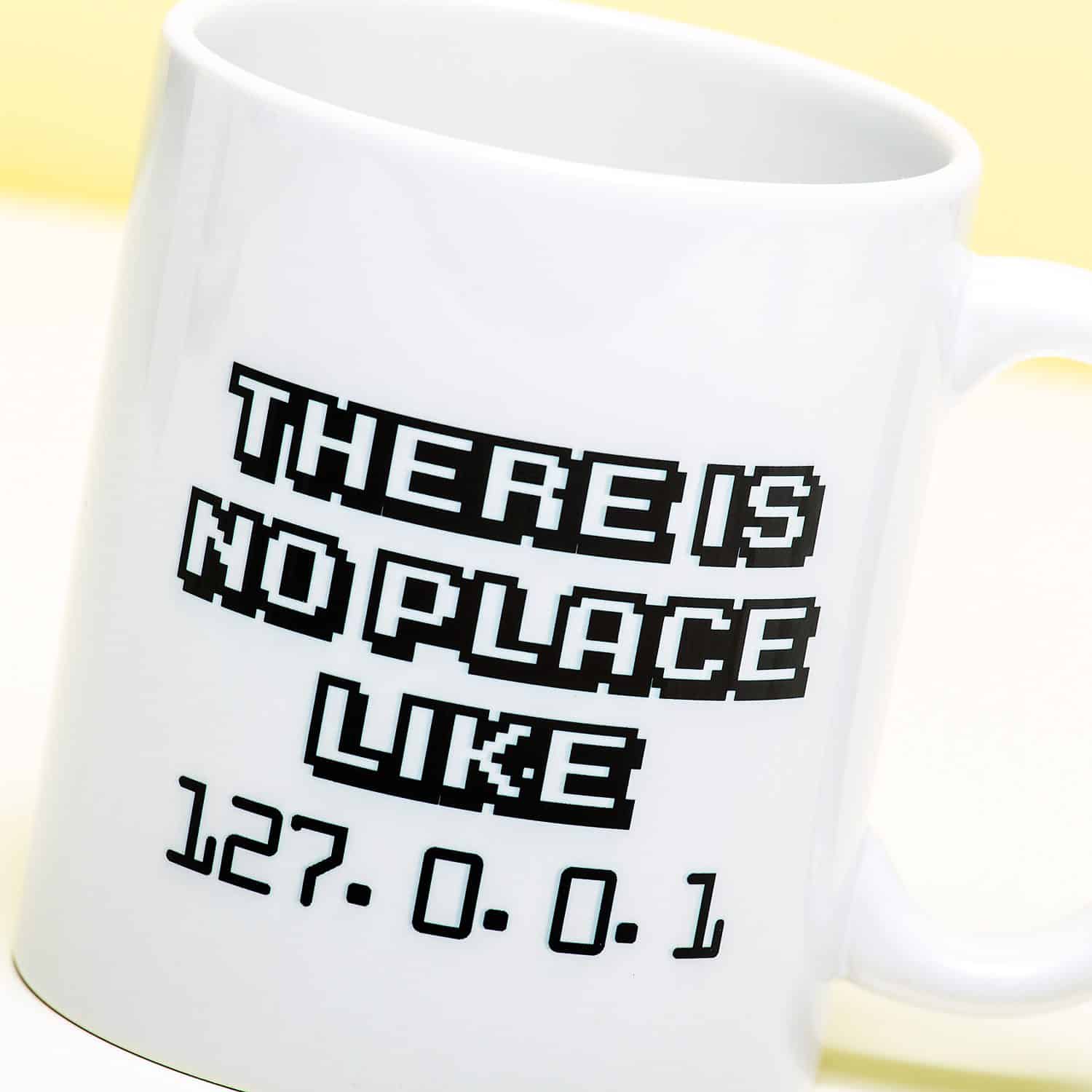 Komt de code 127.0.0.1 jou bekend voor, of heb je geen idee waar we het over hebben? Voor je nerdie en technische vriendje voelt 127.0.0.1 waarschijnlijk net zo vertrouwd als zijn eigen slaapkamer. En precies voor hem hebben we de There’s No Place LIke 127.0.0.1 mok ontworpen. Deze beker is een succes bij iedere programmeur en andere technisch onderlegde persoon. Echt waar!