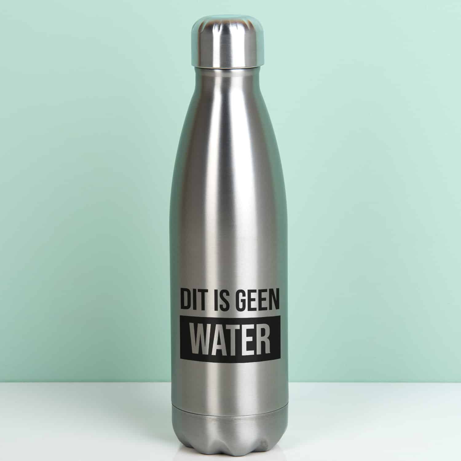 ‘Maar wat is het dan wel?’ Je ziet de vragende blikken als jij uit je Thermosfles Dit is geen water drinkt. Een unieke thermosfles waar groot op staat: Dit is geen water. De duurzame thermosfles houdt warme dranken als koffie en thee 12 uur lang warm. En je koele dranken blijven wel 24 uur lang koel. Maar wat doe je er in als er geen water in zit? Nou… wijn bijvoorbeeld.