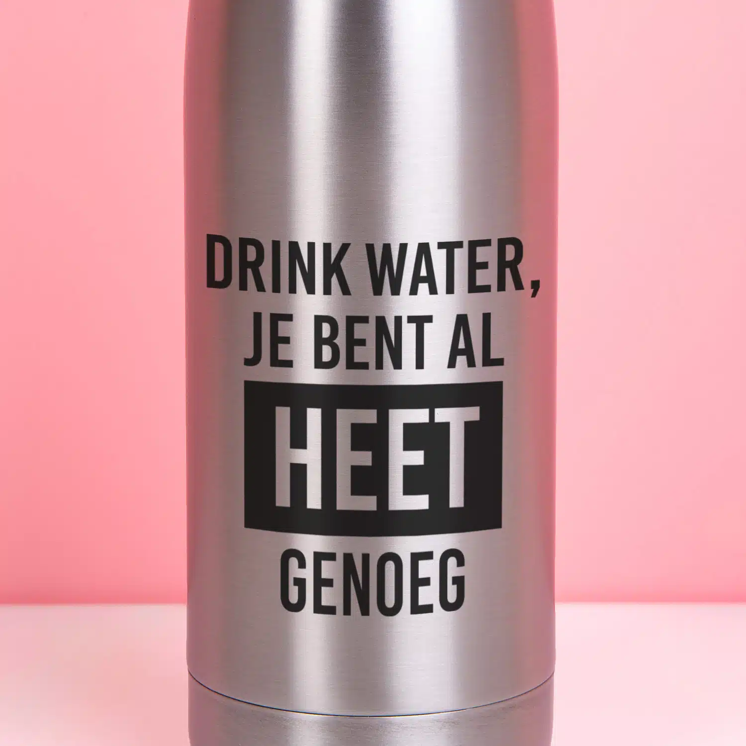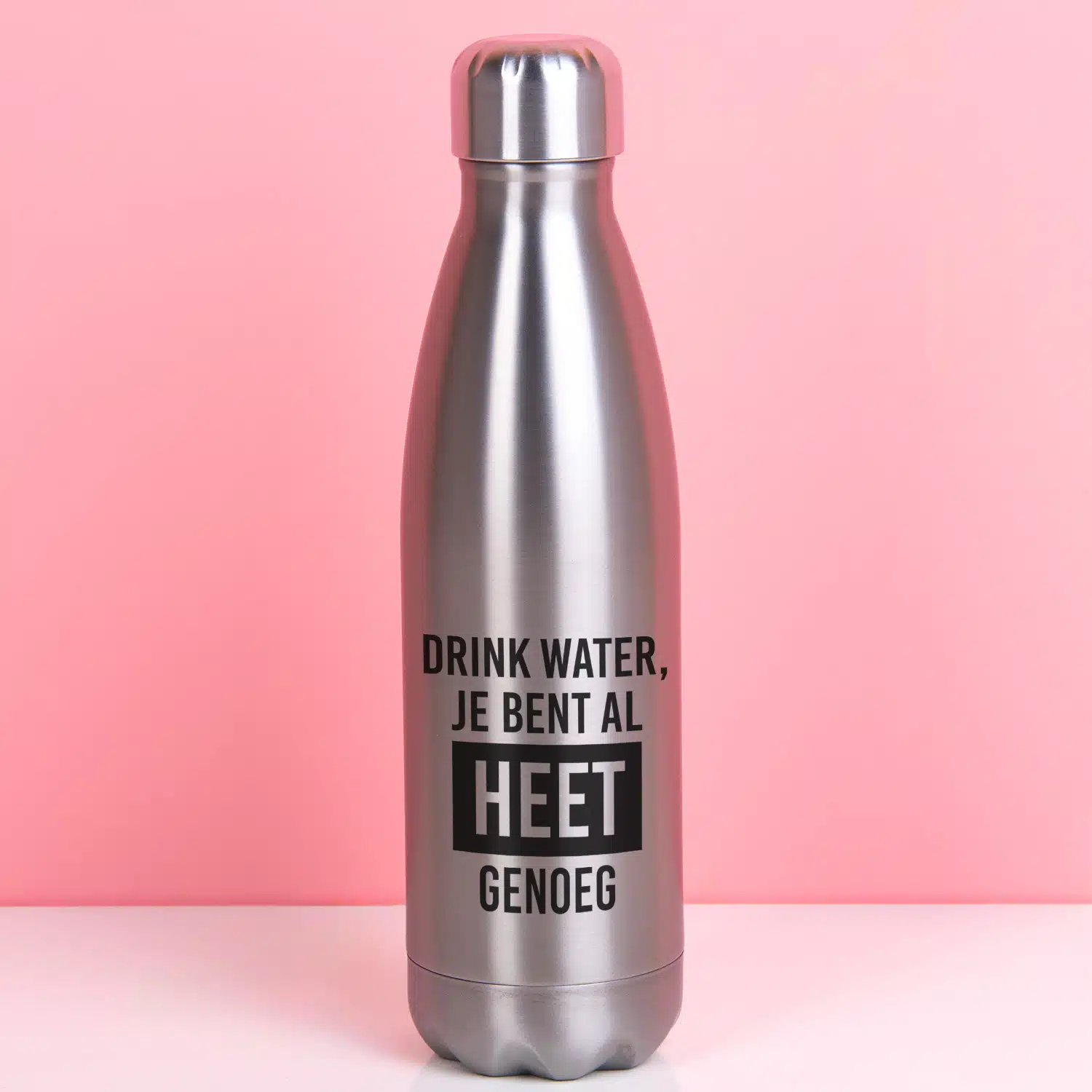 Even afkoelen kan voor jou geen kwaad, want je bent hot, hot, hot! De Thermosfles Heet genoeg is een praktisch cadeau en een compliment in één. Op de thermosfles staat namelijk de tekst: Drink water, je bent al heet genoeg. En koud water drinken is geen probleem met deze thermosfles: hij houdt je water namelijk maar liefst 24 uur koud. Voel je je even iets minder hot, neem dan gewoon koffie of thee mee in deze handige fles. Hij houdt warme dranken namelijk ook 12 uur lang warm.