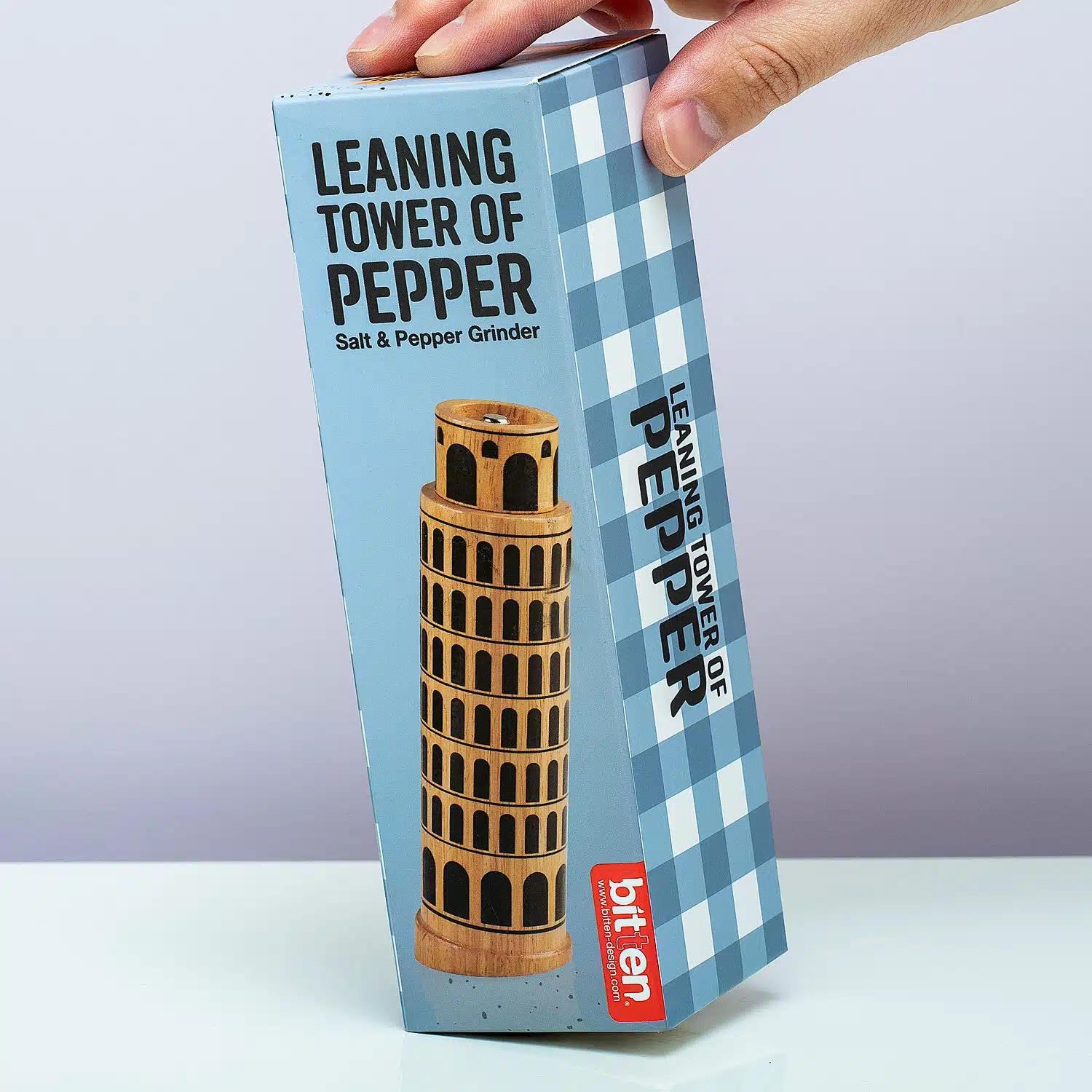 Het kan de beste overkomen: je pasta smaakt een beetje slapjes. Gelukkig is er de Toren van Pisa pepermolen van Bitten. Deze grappige pepermolen ziet eruit als de toren in Pisa: hij staat zelfs scheef. Je kunt de molen gebruiken met peper of zout. Hij is eenvoudig te vullen. Door te draaien voorzie jij je eten van wat extra pit. Een origineel kookcadeau voor de Italofiel!