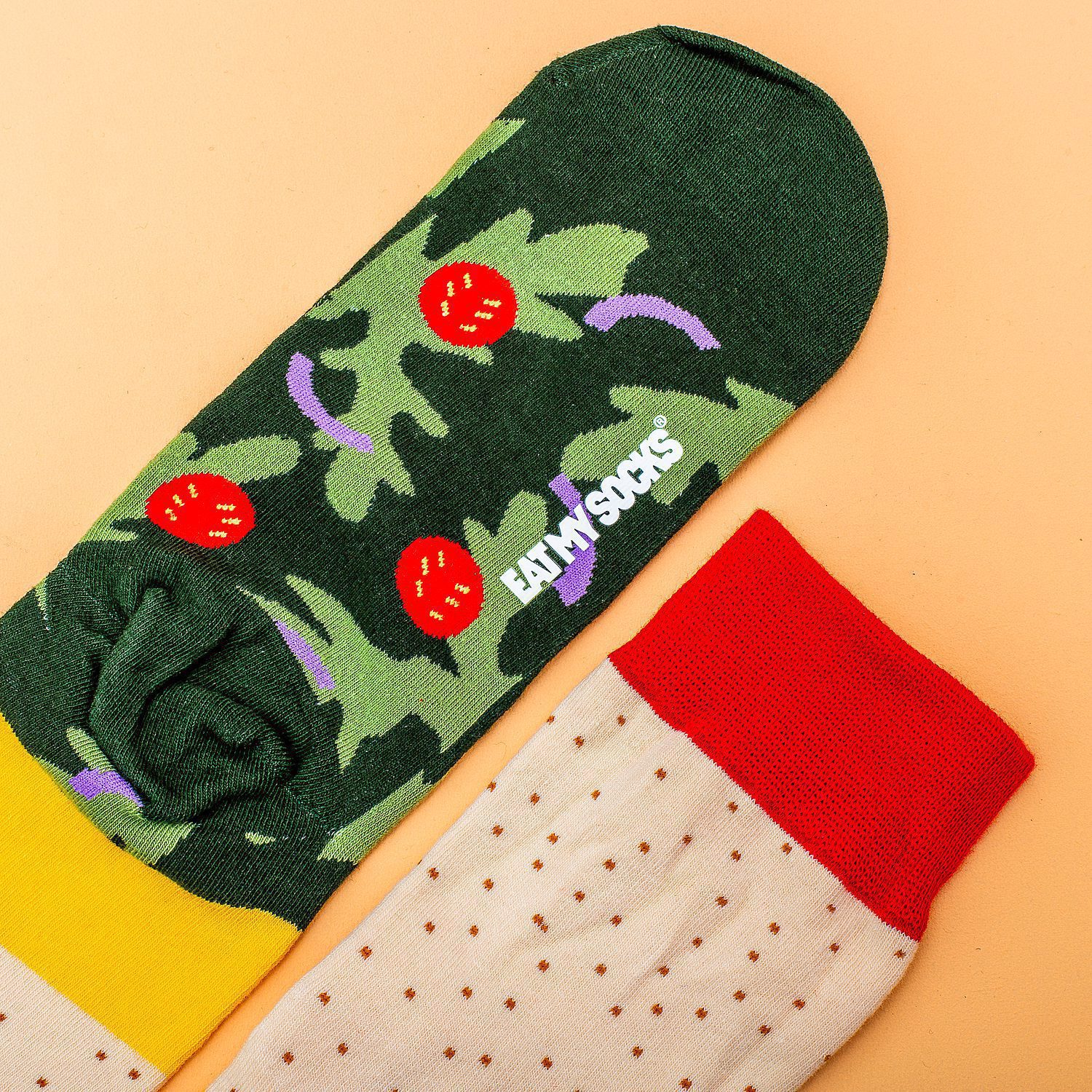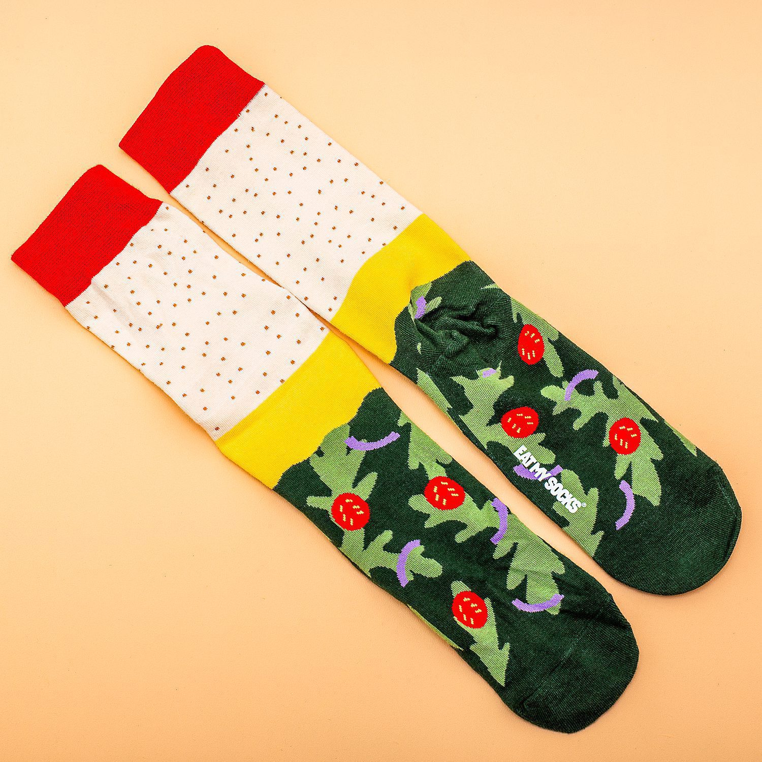 • Sokken die eruit zien als een vega Napolitaanse pizza