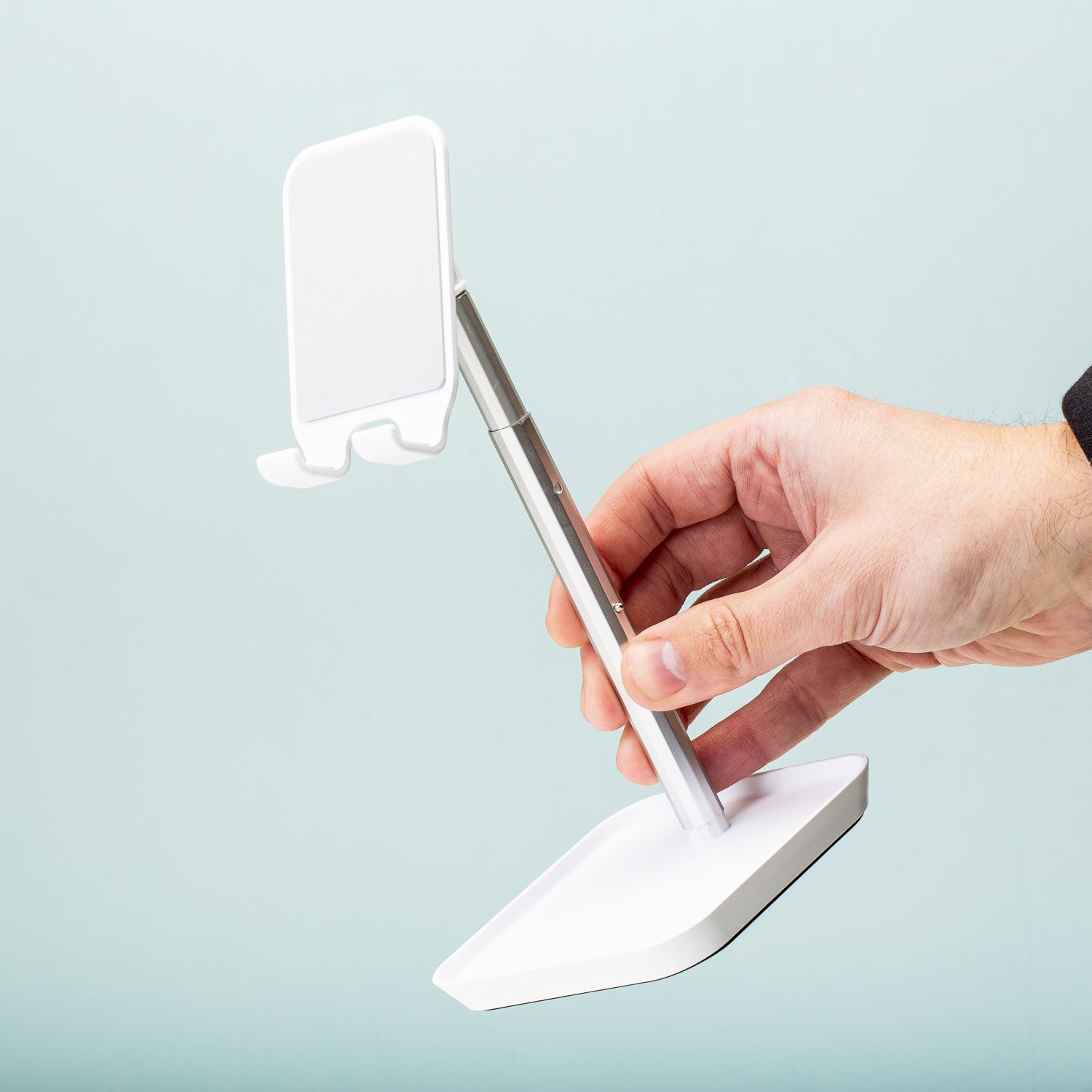 Zit je liever niet met een onderkin in beeld? Of krijg je lamme armen van al het videobellen dat je doet? Met de Verstelbare smartphonehouder van Kikkerland heb je hier geen last meer van. Dit is The Perfect Phone Stand, zo zegt Kikkerland zelf. Je zet jouw telefoon op de houder, zet hem op de juiste hoogte en bent helemaal klaar om een videocall te maken. Wil je tegelijkertijd je telefoon opladen, dan kan dat gewoon. Je kunt de houder ook 45 graden naar voren kantelen. De smartphonehouder heeft een bakje voor je oplader en oordopjes en heeft ook een antislip onderkant. Hij is leverbaar in zwart of wit.