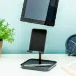 Videocalls of gewoon een filmpje kijken wordt veel makkelijker met de Verstelbare tablethouder van Kikkerland. Zeg je lamme armen maar gedag: vanaf nu zet jij je tablet in deze praktische houder. De Perfect Tablet Stand, zoals Kikkerland zelf zegt. Je kunt de houder in drie verschillende hoogtes zetten en hij is 45 graden naar voren verstelbaar. Zo heb je altijd perfect zicht. Ook handig: de houder heeft een opening aan de onderkant, zodat je je tablet gewoon kunt opladen. Daarnaast kun je je dagelijkse spullen, zoals je AirPods, oplader en sleutels kwijt in het bakje aan de onderkant.