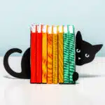 Weer eens wakker geschrokken van je boeken die midden in de nacht omvielen? Met de Verstopte kat boekensteun (set van 2) van Balvi heb je daar geen last meer van. Deze geinige boekensteunen wurmen zich met gemak het huis van een kattenliefhebber binnen. De set bestaat uit twee steunen: een achterkant met staart en een voorkant met kop. Zet je boeken er tussen en het is net alsof de kat zich verstopt.