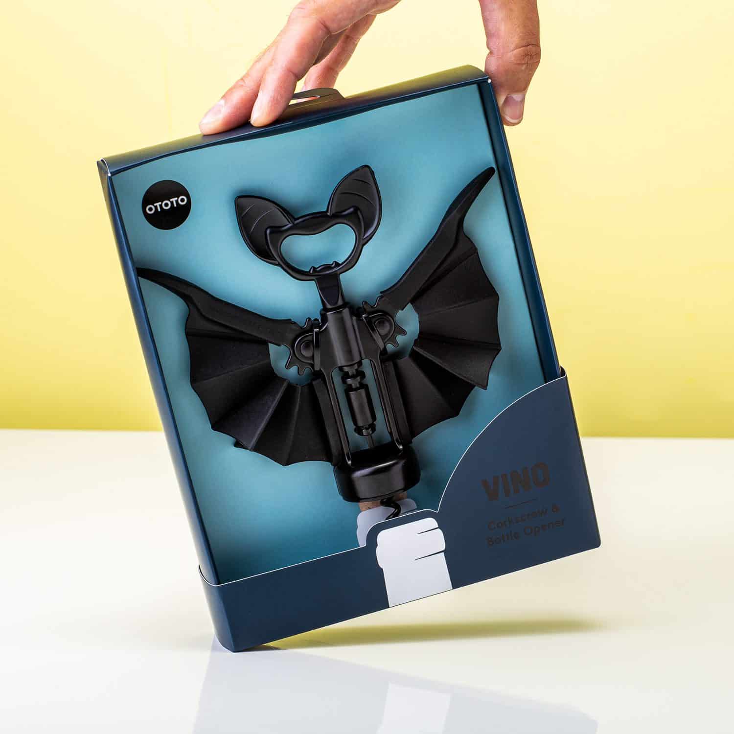 Vleermuizen spooky? Niet de Vino vleermuis kurkentrekker van Ototo! Dit wordt juist je beste vriend, als wijnliefhebber. De kurkentrekker in de vorm van een vleermuis laat haar vleugels zien, als je haar in de kurk draait. Liever een biertje? De kurkentrekker is ook geschikt om te gebruiken als flesopener. Met deze kurkentrekker breek je het ijs op elk feestje. Ook super leuk als cadeautje.