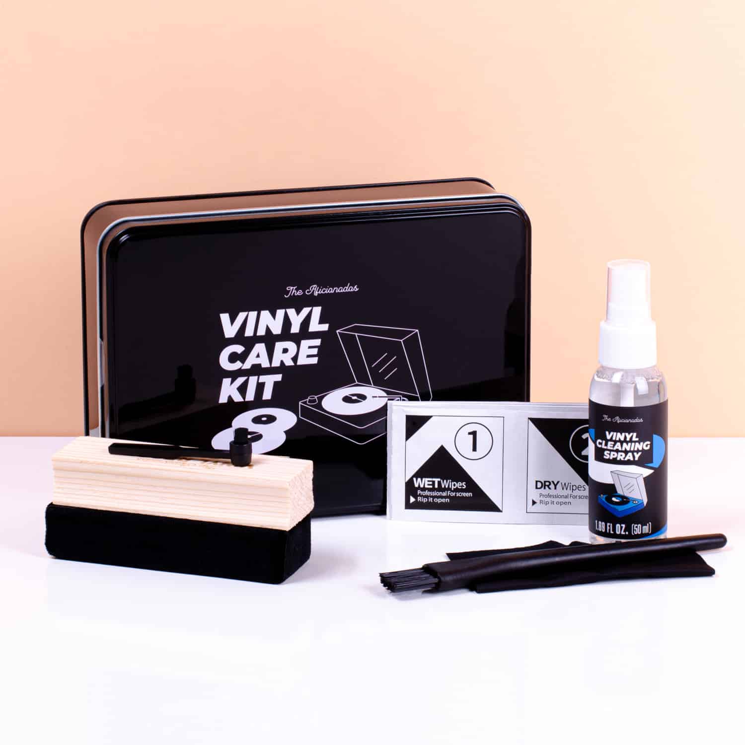 Een set waarmee je je elpees en platenspeler schoon kunt houden. Origineel schoonmaaksetje voor iedereen die nog steeds liever platen luistert dan een streamingsdienst.