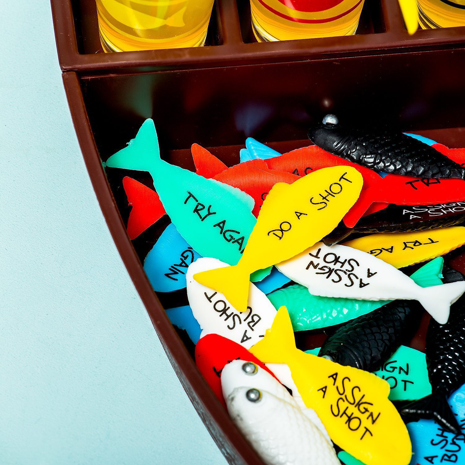 • Inhoud: boot, zes shotglaasjes, hengel en vissen