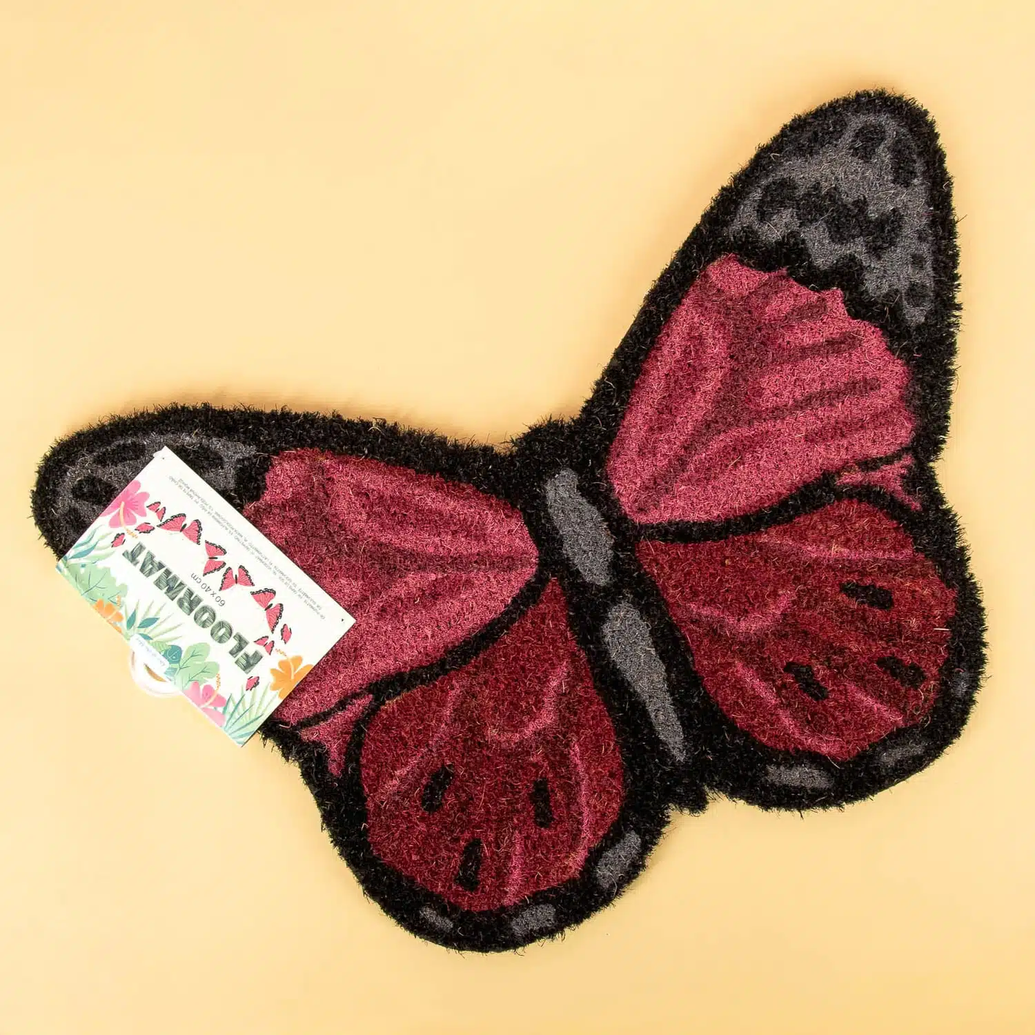 Met deze vrolijke vlinder deurmat voor de deur voelt iedereen zich welkom. Hij is gemaakt van kokosvezels, die blaadjes en modder eenvoudig van je schoenzolen vegen.