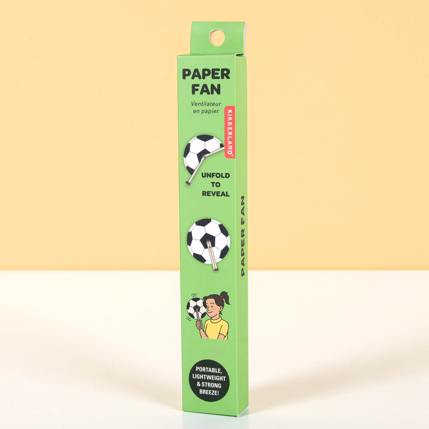 Houd jij je hoofd koel als Oranje (of je zoontje) moet voetballen? Wel als je de handige Voetbal waaier van Kikkerland bij je hebt! Deze papieren waaier in de vorm van een voetbal vouw je open wanneer het te warm wordt op de tribune of wanneer je team weer eens verliest en je hoofd moet afkoelen. Perfect voor het WK, zomerse wedstrijden of gewoon voor op vakantie.