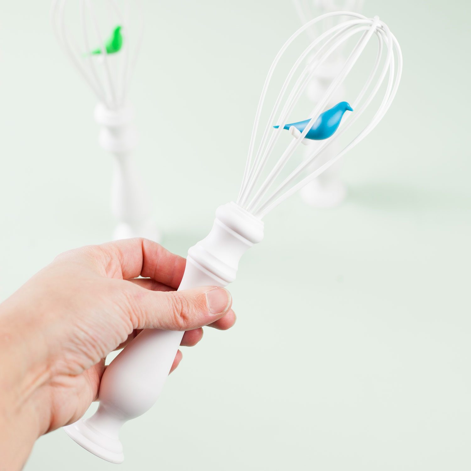 Stop maar met zoeken naar een leuk cadeautje voor iemand die graag bakt, want je ziet het hier voor je. De Vogelkooi garde van Luf Design is functioneel en stijlvol tegelijkertijd. Het is een witte garde met daarin een vogeltje. Door het design van de garde lijkt het net alsof de vogel in een kooi zit. De Vogelkooi garde is net zoals iedere andere garde te gebruiken voor bijvoorbeeld het kloppen van slagroom of pannenkoekenbeslag. Het vogeltje in de kooi ziet er persoonlijk op toe of je het allemaal goed doet.