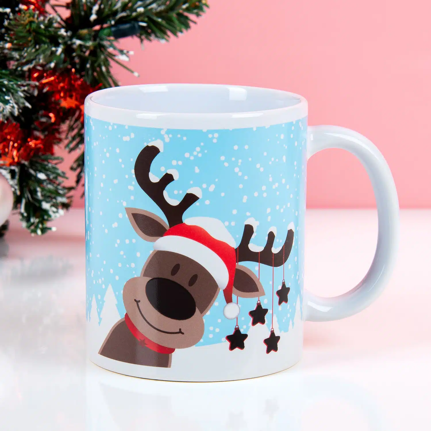 Voor iedereen die niet kan wachten tot het kerst is hebben we iets leuks: de Warmtegevoelige rendier kerstmok. Deze schattige mok past perfect in de knusse winterse sfeer waar je naar op zoek bent. De beker heeft een lichtblauwe achtergrond met sneeuw en een vrolijke rendier met kerstmuts en een zwarte neus. Schenk je een warme drank in de beker, dan verandert de neus van Rudolph van zwart in rood.