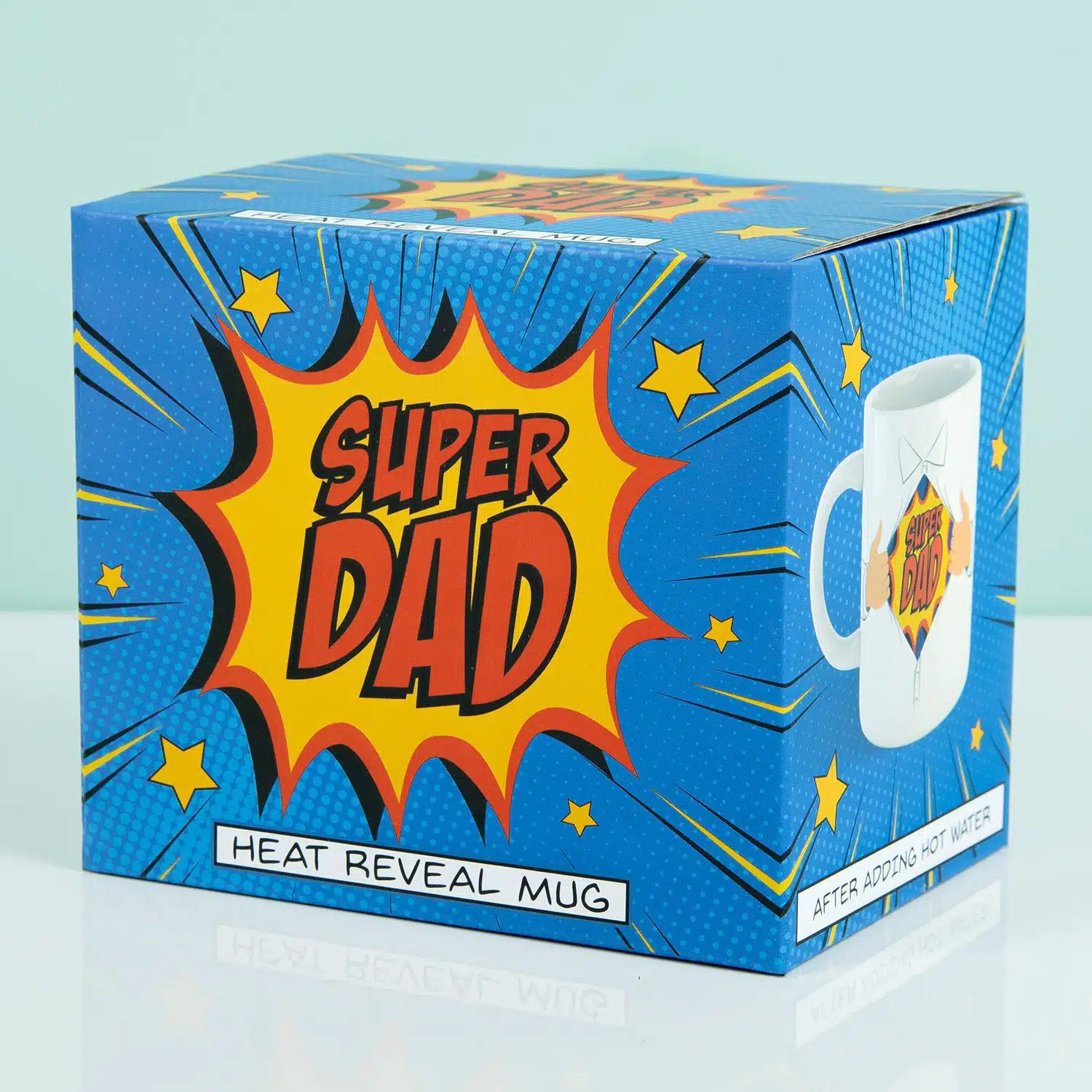 Jouw vader is de beste, maar vertel je hem dat ook vaak genoeg? Zo niet, geef hem dan met Vaderdag of zijn verjaardag de Warmtegevoelige Super Dad mok van Gift Republic cadeau. Deze originele mok ziet eruit als de borstkas van een man die zijn overhemd open trekt. Zonder drinken zie je niks aan het zwarte vlak, maar als je er warme drank inschenkt dan gebeurt er iets bijzonders. Er verschijnt een stuk van een superheldenpak met de tekst Super Dad. Een origineel cadeautje voor je eigen super vader!