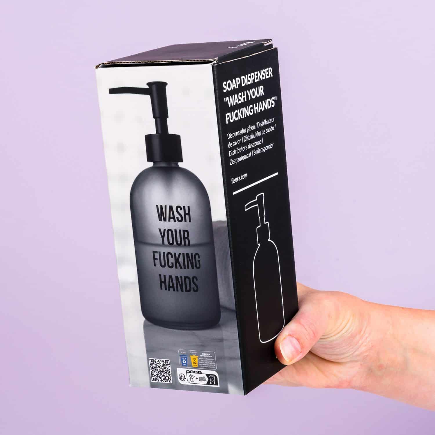 Heb je last van huisgenoten en bezoek die hun handen niet wassen na een toiletbezoek? Zet de Wash Your Fucking Hands zeepdispenser van Fisura in het toilet. Deze zeepdispenser, met de tekst Wash Your Fucking Hands, zal ze er subtiel aan herinneren dat het toch echt nodig is om de handen te wassen. Je kunt de dispenser eenvoudig vullen met je favoriete zeep en de meegeleverde trechter.