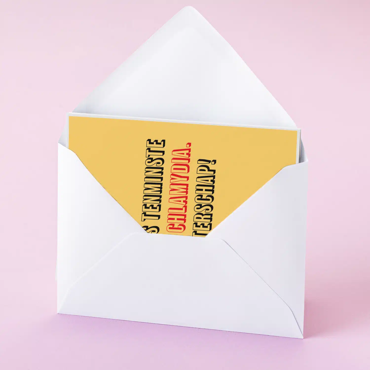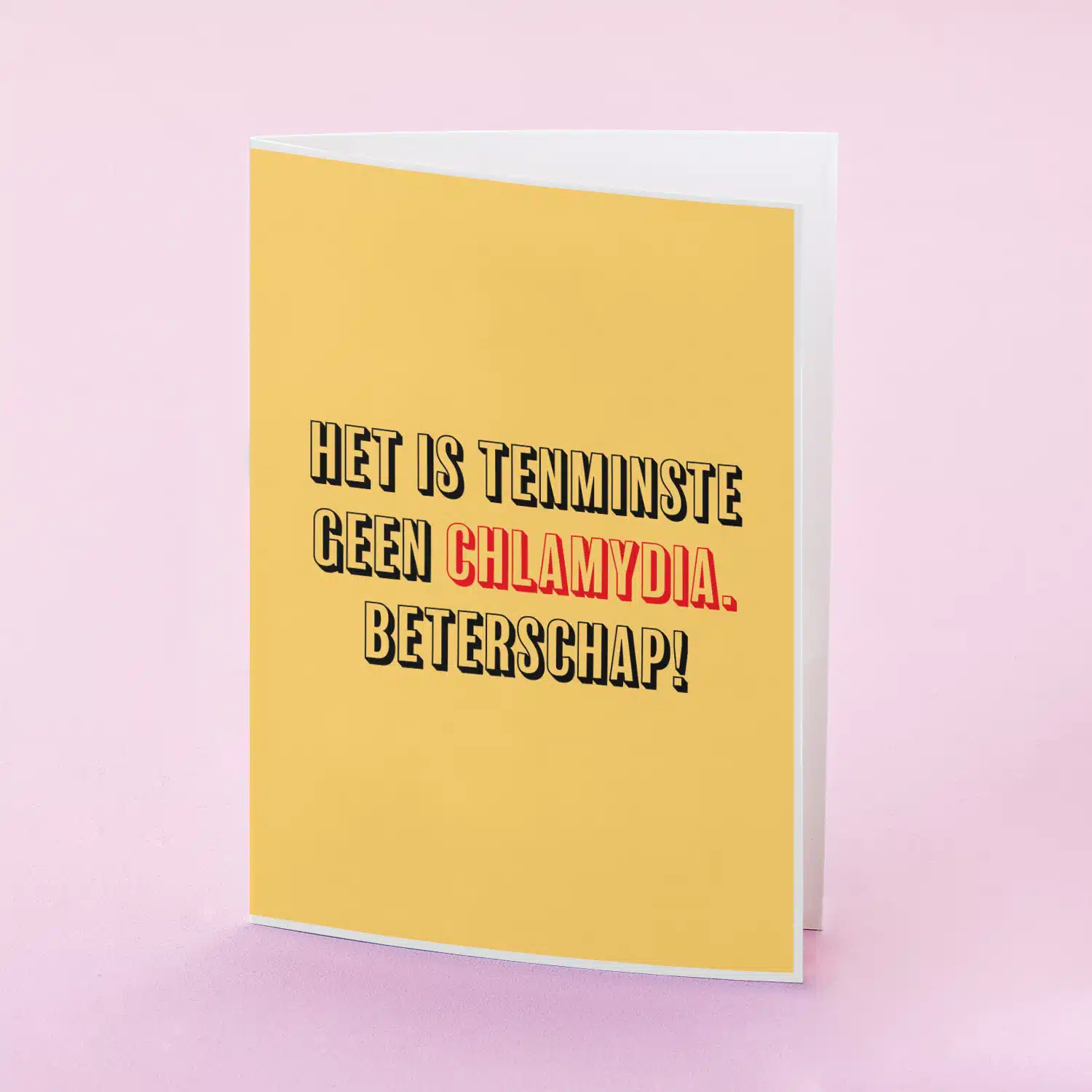 Ligt je BFF in de lappenmand? Heeft je vriend de mannengriep? Verras hem of haar met de Wenskaart Het is tenminste geen chlamydia. Deze hilarische wenskaart bevat de tekst: Het is tenminste geen chlamydia. Beterschap! De moraal van deze kaart? Dat het altijd erger kan! Als dat de ontvanger van de kaart niet opkikkert?