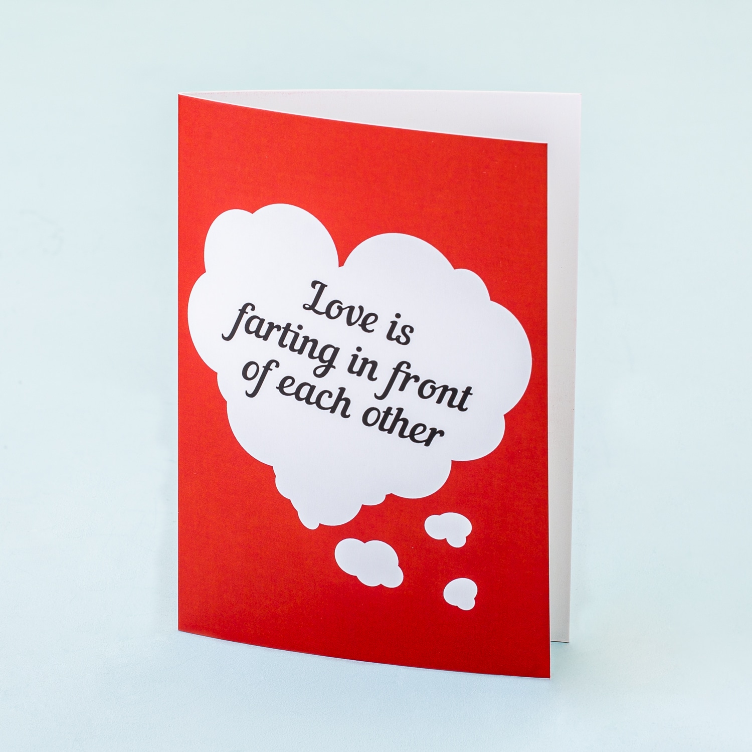 Gefeliciteerd lief stel, met jullie huwelijk! Jullie laten scheten in elkaars bijzijn: dat moet wel echte liefde zijn. De Wenskaart Love Is… is een grappige liefdeskaart voor bijvoorbeeld Valentijnsdag of om naar een stel te sturen dat pas is getrouwd. Op de kaart staat een gaswolkje in de vorm van een hart en de tekst: Love is farting in front of each other. Wil je de kaart rechtstreeks naar de ontvanger versturen? Dan schrijven wij de persoonlijke boodschap er voor je op.