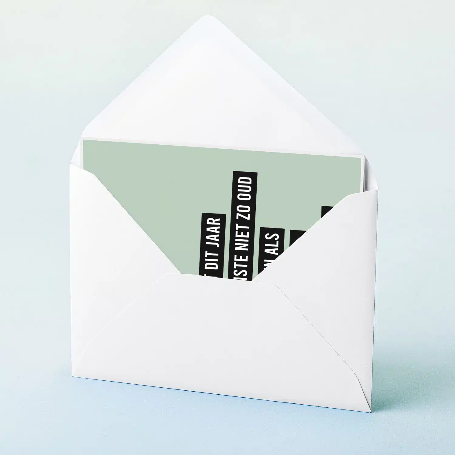 Niet iedereen vindt het leuk om geconfronteerd te worden met zijn of haar verjaardag. Maar gelukkig ben jij er, als goede vriendin, om de pijn wat te verzachten. De hilarische Wenskaart Niet zo oud als volgend jaar is de perfecte verjaardagskaart. Op de kaart staat de tekst: Je bent dit jaar tenminste niet zo oud geworden als volgend jaar. Fijne verjaardag!