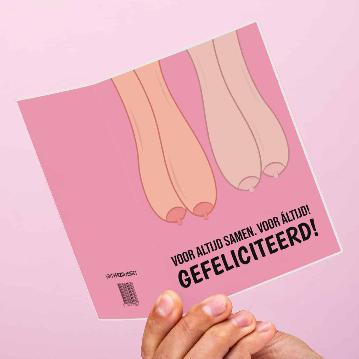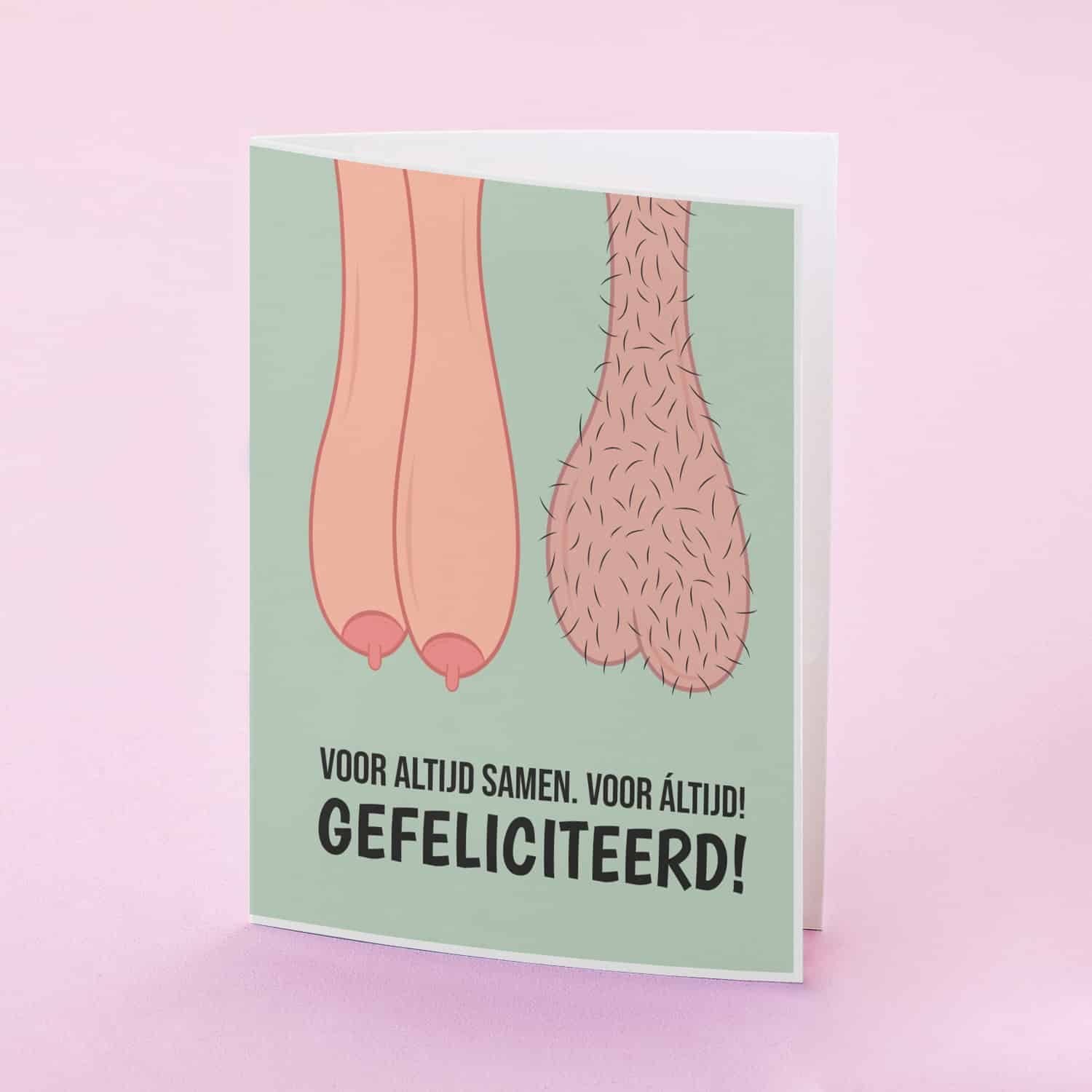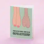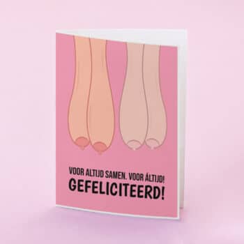 De inkt van jullie trouwboekje is nog niet droog en de eerste kaarten om jullie te feliciteren liggen al in de brievenbus. Om je te feliciteren met het feit dat je voor áltijd samen zult zijn. Leuk of zet je het op een rennen? Verras je vrienden die gaan trouwen of een geregistreerd partnerschap aangaan met de hilarische Wenskaart Voor altijd samen. Hij is er in drie varianten: voor mannen, voor vrouwen en voor man-vrouw stellen.