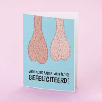 De inkt van jullie trouwboekje is nog niet droog en de eerste kaarten om jullie te feliciteren liggen al in de brievenbus. Om je te feliciteren met het feit dat je voor áltijd samen zult zijn. Leuk of zet je het op een rennen? Verras je vrienden die gaan trouwen of een geregistreerd partnerschap aangaan met de hilarische Wenskaart Voor altijd samen. Hij is er in drie varianten: voor mannen, voor vrouwen en voor man-vrouw stellen.
