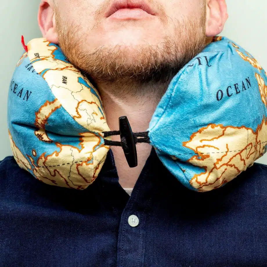 - Nekkussen met een hoes met wereldkaart erop