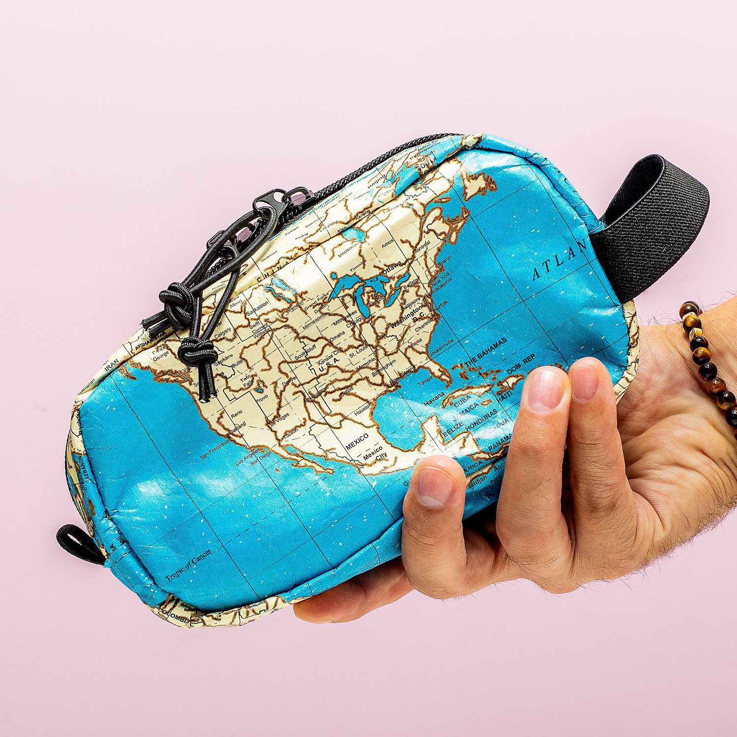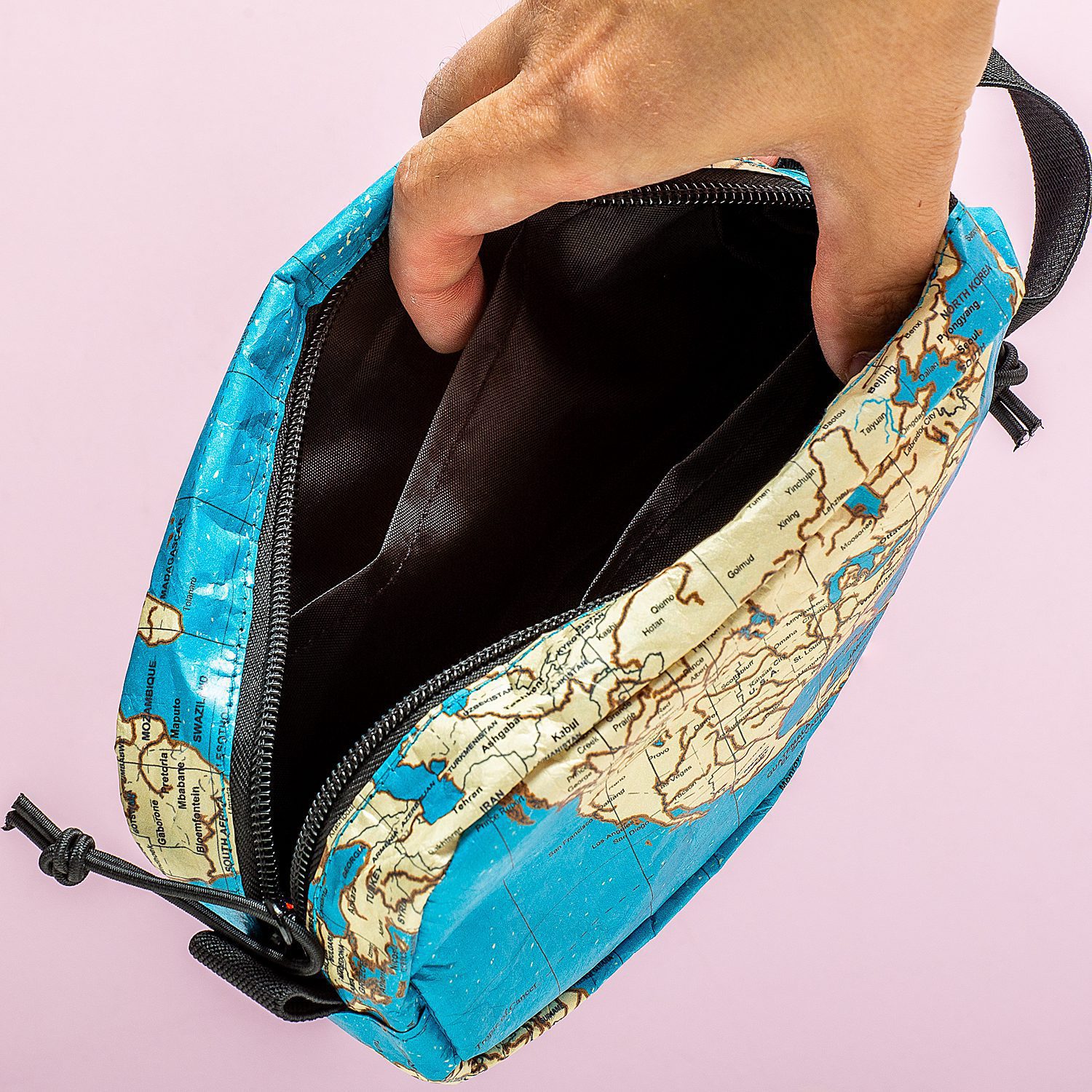 Als je een wereldreis maakt, dan neem je het liefst zo min mogelijk spullen mee. De Wereldkaart toilettas van Kikkerland is sterk, maar licht van gewicht. De toilettas is namelijk gemaakt van Tyvek. Door de verschillende vakjes behoud je het overzicht. Door de opdruk met de wereldkaart weet je altijd precies waar je bent. Tenminste… als je naar Amerika gaat.