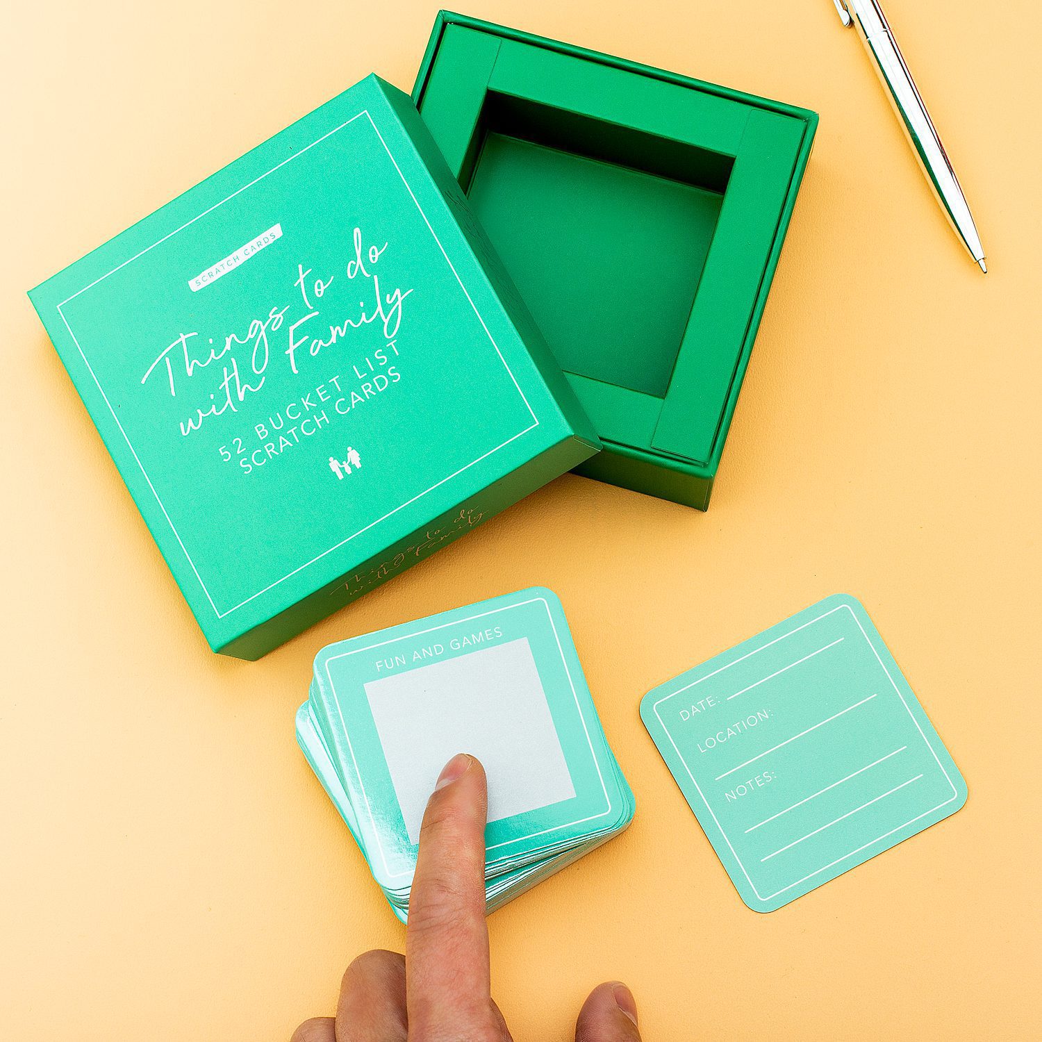 Een dag samen naar de spa, een lange fietstocht maken of samen een maaltijd bereiden: de What to Do kraskaarten van Gift Republic geven je inspiratie als je zelf even niet weet wat je samen kunt doen. Haal een kaartje uit het doosje, kras het folie weg en geniet van quality time met je geliefde, ouders of gezin. Als je elke week een activiteit doet, kun je een jaar lang vooruit met de kraskaarten. Ze zijn leverbaar in verschillende varianten.