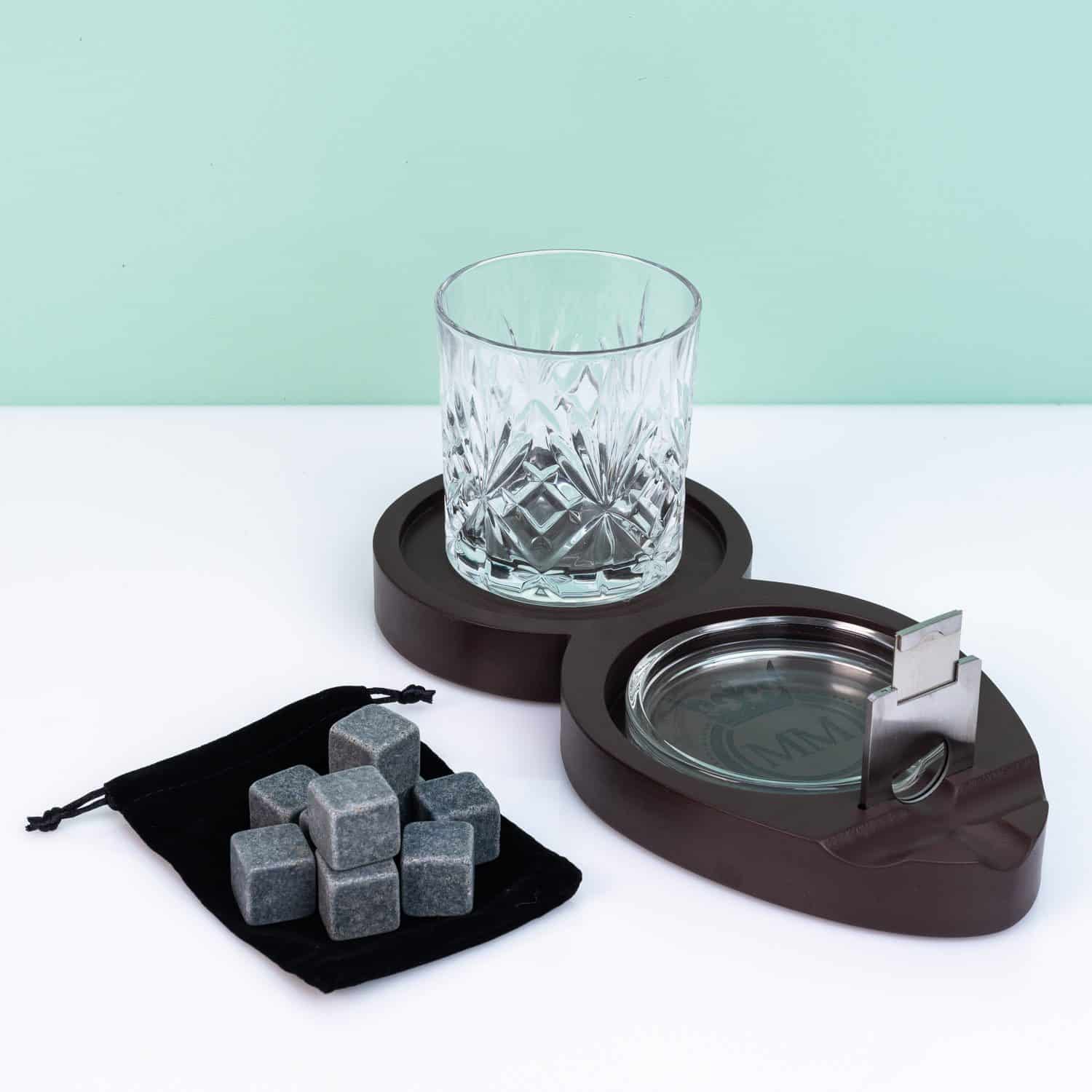 Ben je het gezeur thuis even helemaal zat? Trek je dan terug met je Whiskey en sigaar cadeauset van MikaMax in je kantoor, garage of slaapkamer. Met deze luxe cadeauset tover je elke ruimte in huis om tot een heuse gentlemen’s club. De set bevat een houten dienblad, een luxe whiskeyglas, negen whiskey stones in een fluwelen zakje, een asbak en een sigarensnijder. De whiskey stones worden ijskoud in de diepvries, maar verdunnen je drankje niet.