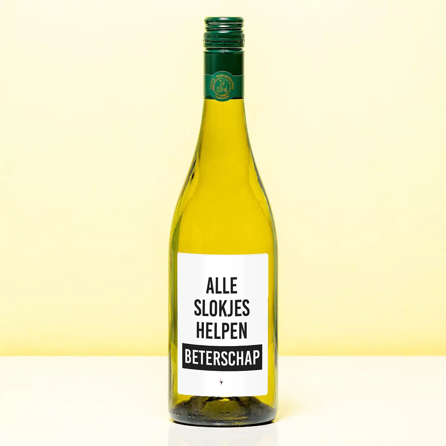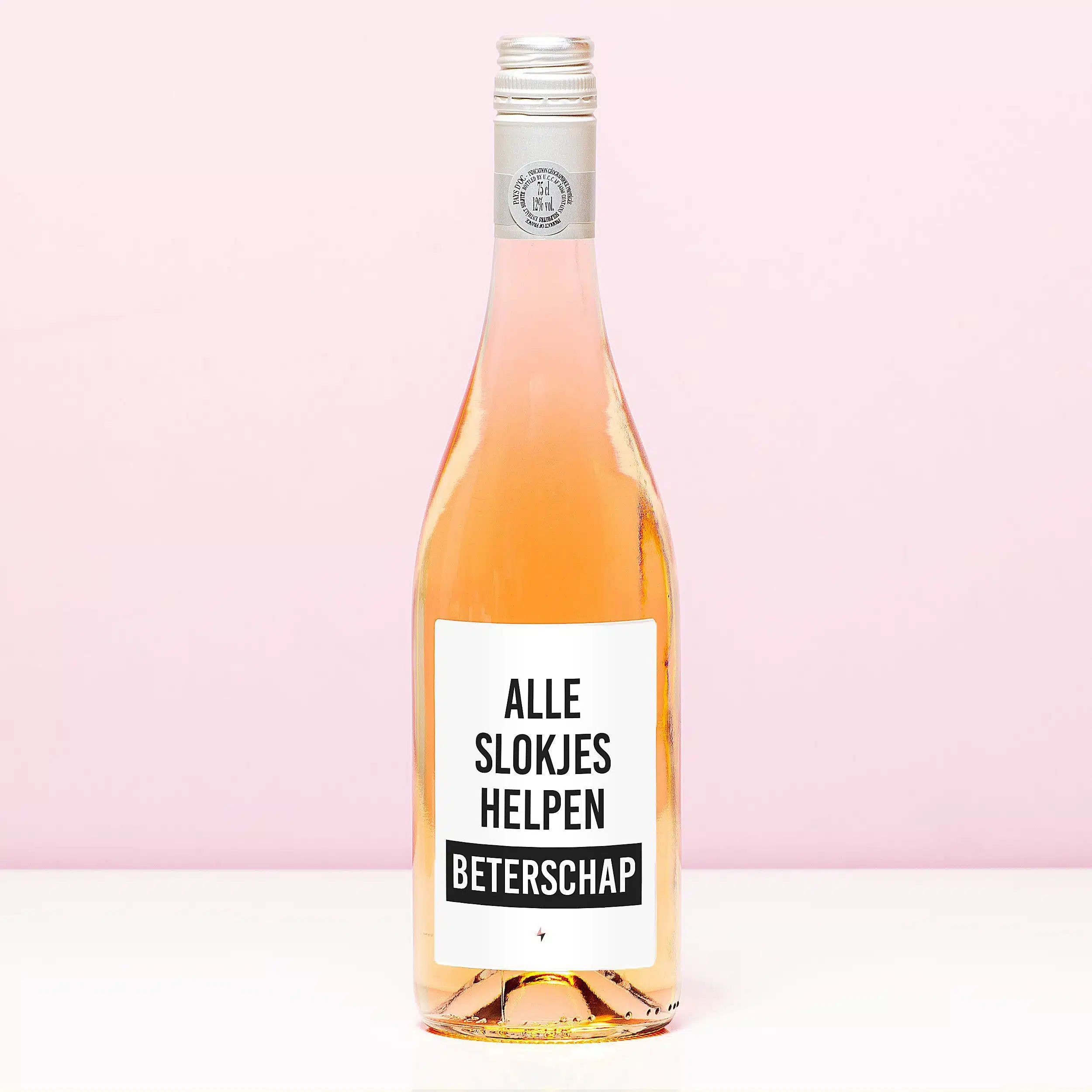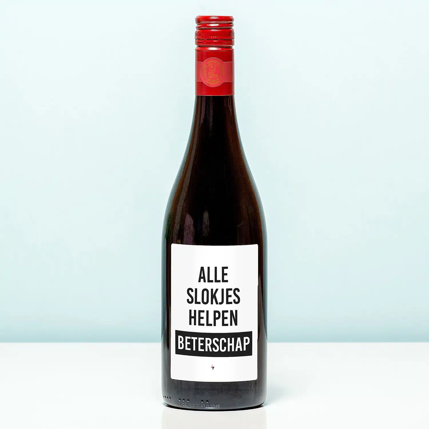 Ligt je bestie met griep in bed? De Wijnfles Beterschap alle slokjes helpen helpt hem of haar er snel weer bovenop! Deze wijnfles is voorzien van een speciaal etiket met de tekst: Alle slokjes helpen. Beterschap. Een origineel alternatief als je geen zin hebt om een fruitmand op te sturen. En hè: wijn is ook gemaakt van fruit.