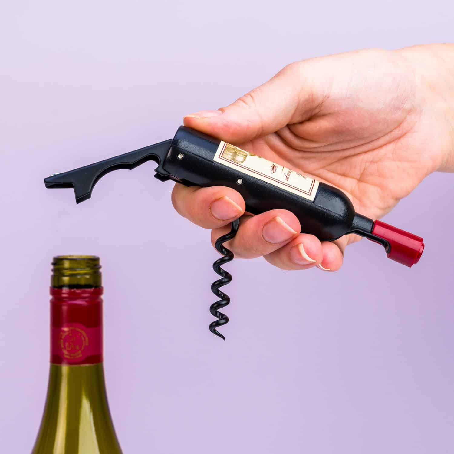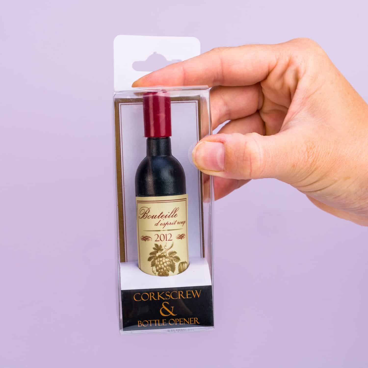 Een fles wijn om je wijnfles mee te openen? Dat is de Wijnfles kurkentrekker van Out of the Blue! Een grappige kurkentrekker die lijkt op een flesje wijn. De kurkentrekker is ook voorzien van een flesopener, want je kunt het je bijna niet voorstellen, maar er zijn mensen die liever een biertje drinken. Deze leuke kurkentrekker is het perfecte cadeautje voor wijndrinkers.