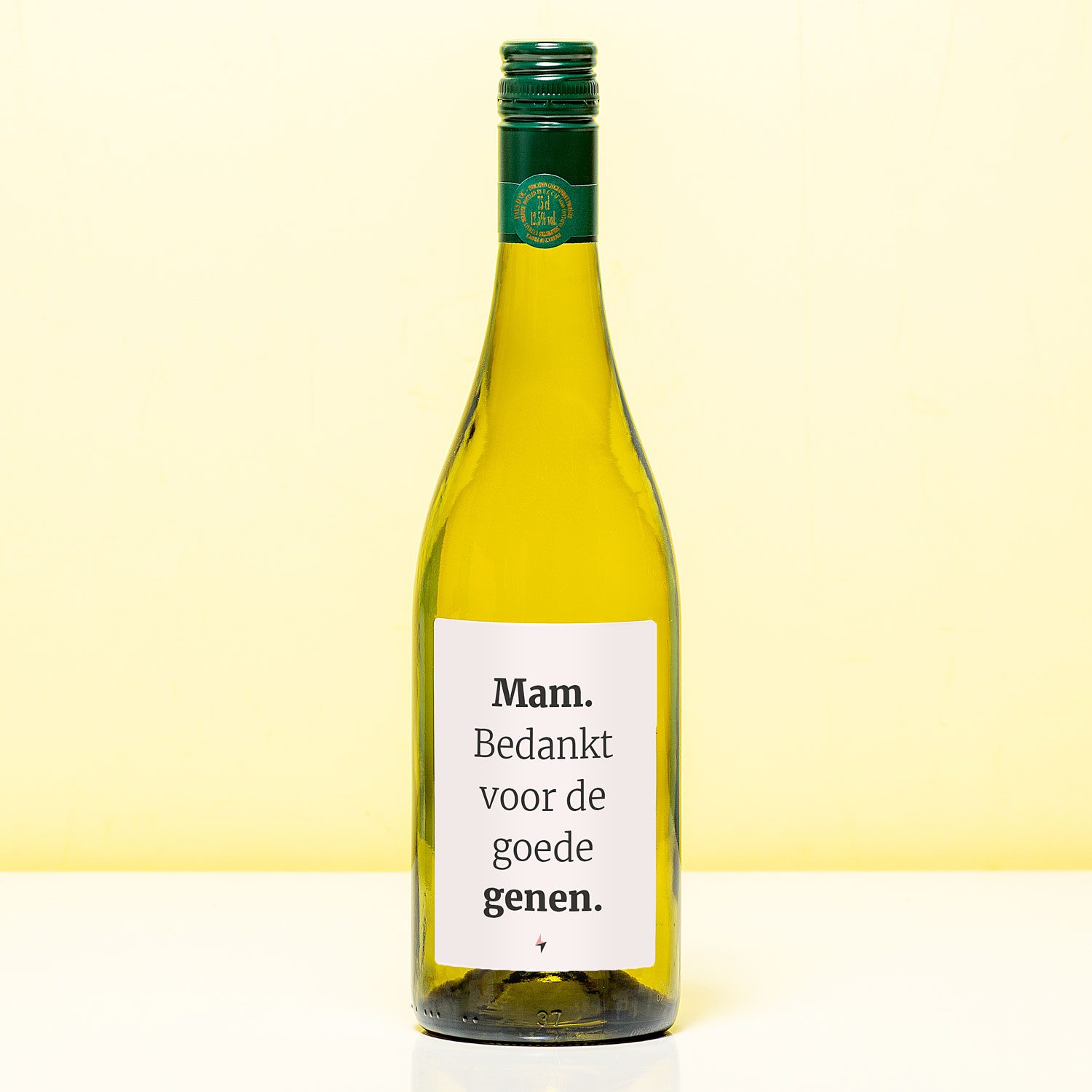 Wat is er nou een groter compliment voor je moeder dan te zeggen dat je zo blij bent met haar goede genen? De Wijnfles Mam, bedankt voor de goede genen doet precies dat. Eigenlijk bedank je haar dus dat jij zo leuk bent geworden. En daar zal ze het ongetwijfeld mee eens zijn. Een leuke fles wijn, voor bijvoorbeeld Moederdag of haar verjaardag.