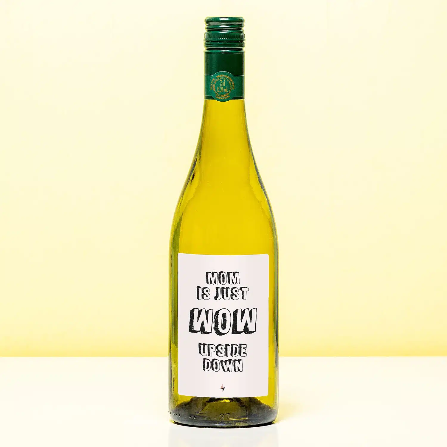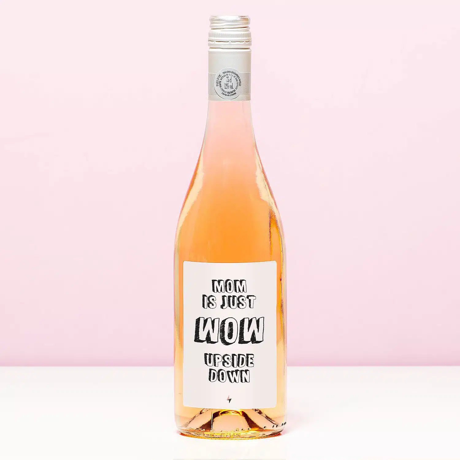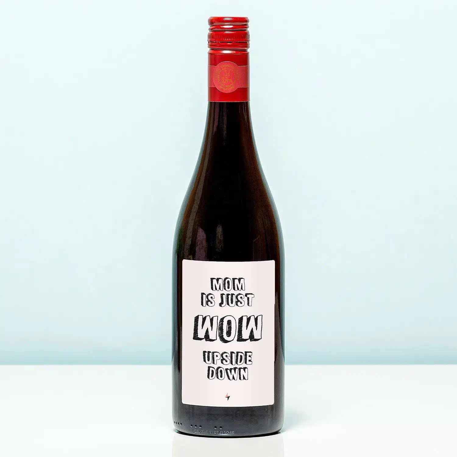 Heb je er ooit over nagedacht dat als je WOW omdraait, er MOM staat? Heel erg passend, wat ons betreft! Verras je moeder met de Wijnfles Mom is wow upside down, om haar te laten weten hoe dol je op haar bent. Op de wijnfles zit een etiket met de tekst: Mom is just wow upside down. Een leuk cadeau voor je moeders verjaardag of Moederdag.
