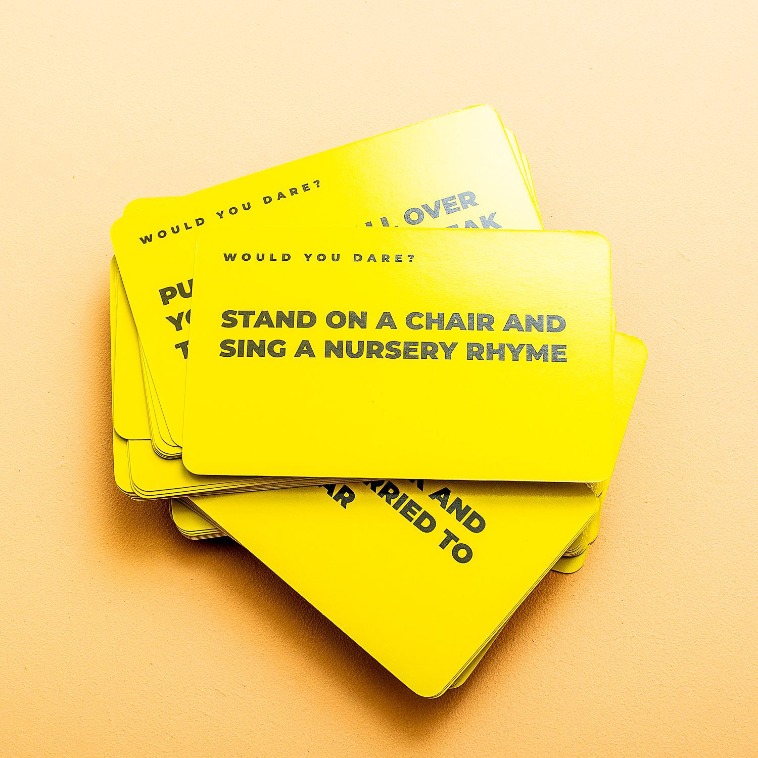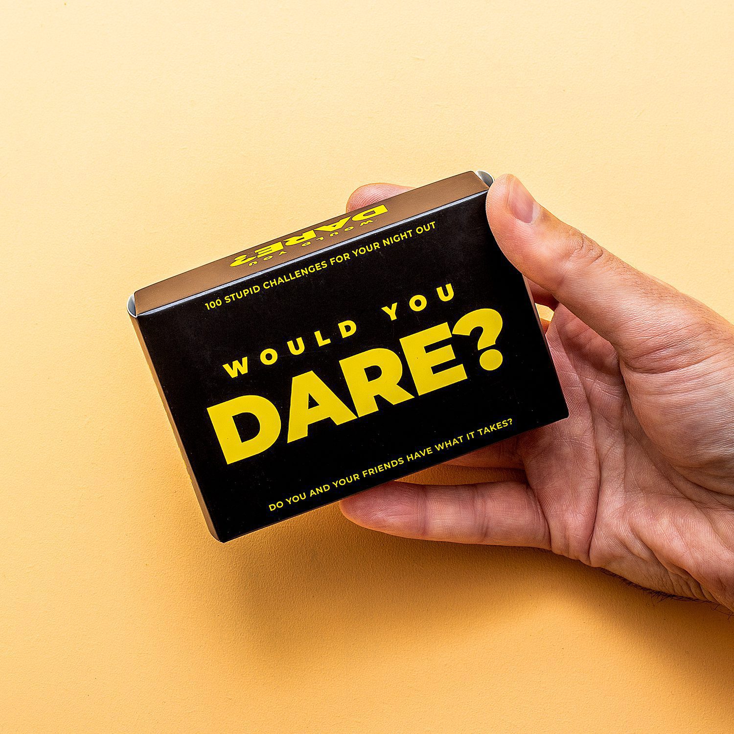 Durf jij een selfie te maken met iemand die je zomaar tegenkomt op straat? Of een minuut lang een striptease uitvoeren? De Would You Dare uitdagingen van Gift Republic geven je honderd hilarische uitdagingen. Durf jij ze allemaal uit te voeren? Neem de set kaarten mee op vakantie en gebruik ze tijdens een avond uit: daar kent toch niemand je.
