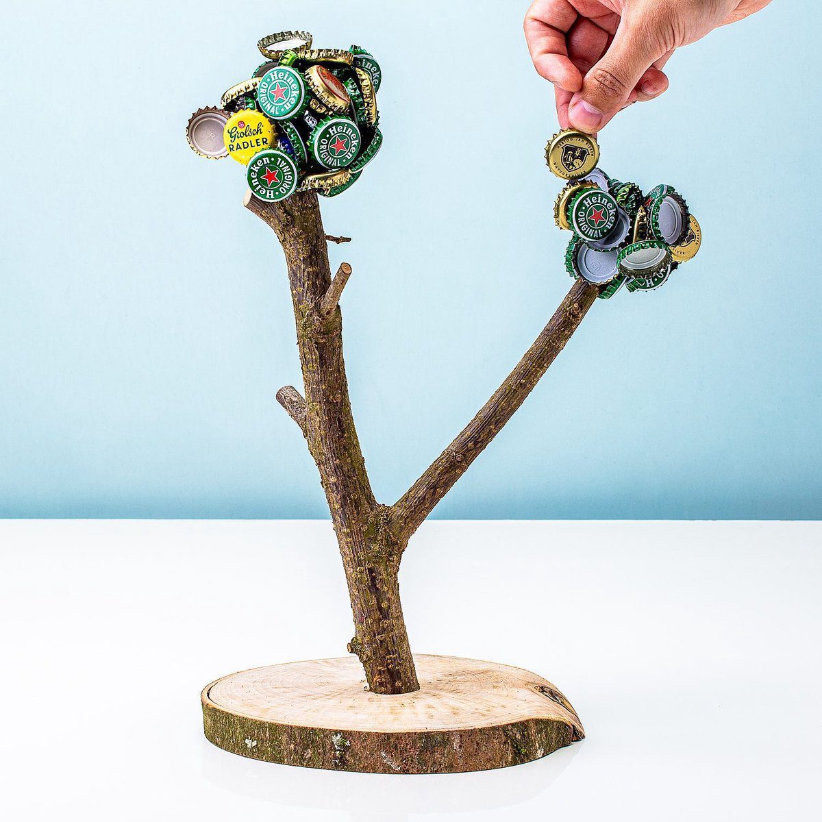 Je aanrecht, keukentafel en salontafel liggen na een feestje bomvol met bierdopjes. Dat is op zich niet erg, maar als je het makkelijker wilt hebben met opruimen, dan is de XXL Bierboom wat voor jou. Deze handige magnetische boom vangt je bierdopjes. Aan het uiteinde van de twee stammen zitten sterke magneten. Aan elke magneet kunnen wel 60 kroondoppen blijven plakken. Gooi je bierdopje richting de bierboom en als je goed richt, dan blijft hij aan de boom hangen.