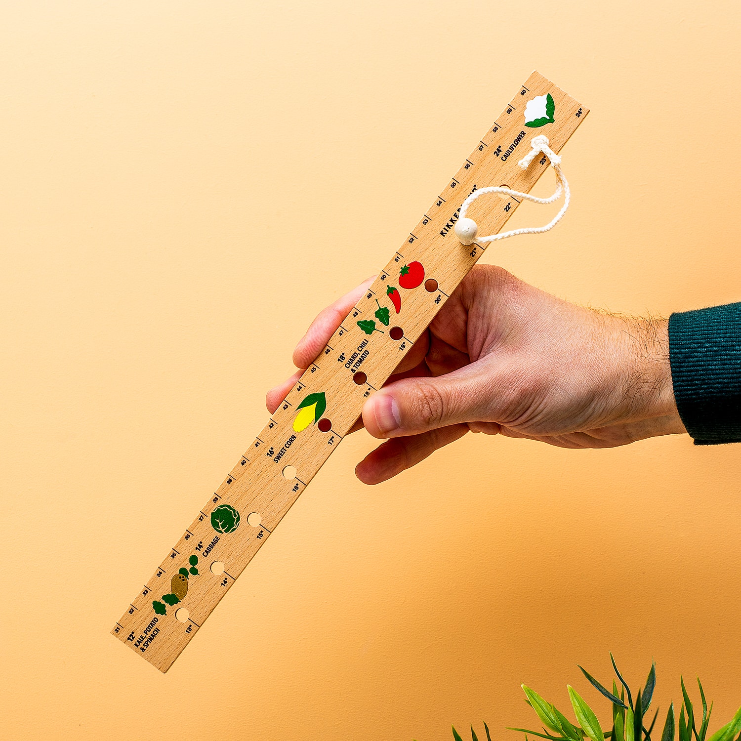 • De beukenhouten liniaal is een praktisch hulpje voor de beginnende moestuinier.