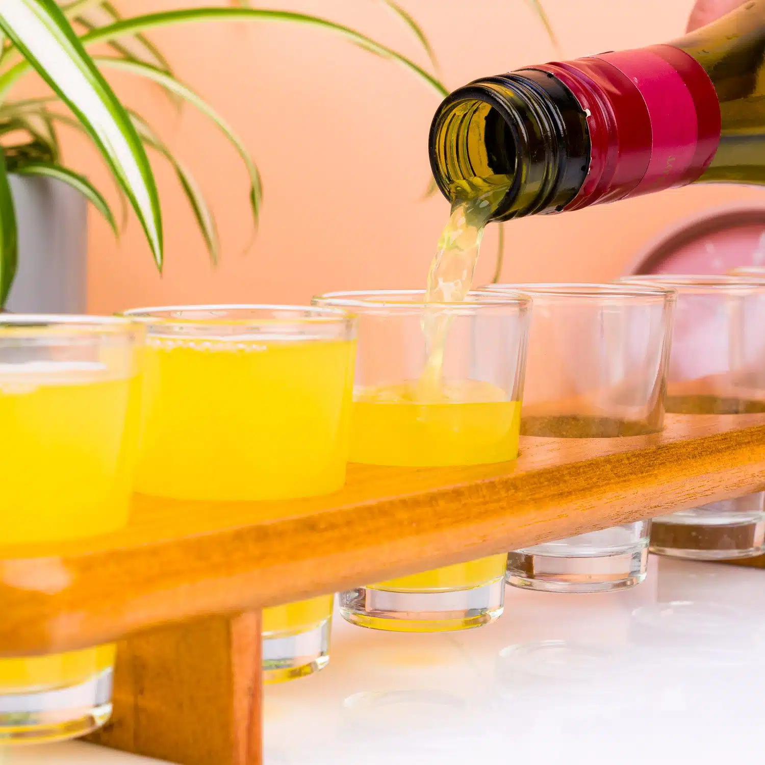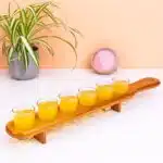 - Houten houder met zes shotglaasjes