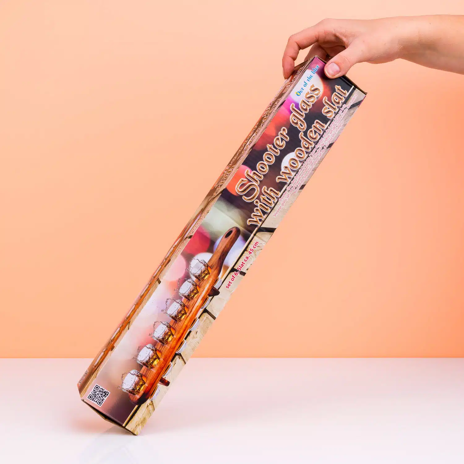 Zes shotjes in één hand houden? Een eitje, als je de Zes shotglaasjes op serveertray van Out of the Blue hebt. Een handige houten houder met handvat, waar zes shotglaasjes op staan. Zo hoef je maar één keer naar de keuken te lopen om al je vrienden van een shotje te voorzien. Ideaal voor feestjes!