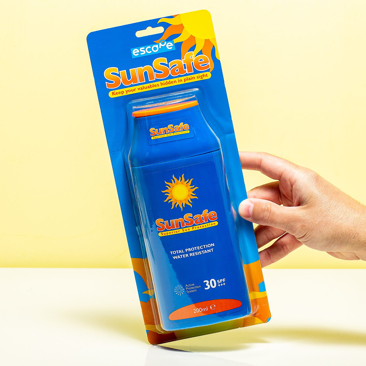 Je kent het vast wel: lig je lekker op het strand met je partner, willen jullie samen even zwemmen. Maar wie gaat er dan op de spullen letten? Of je neemt de gok en laat je telefoon, sleutels en geld gewoon in de tas zitten of er zit niks anders op dan om beurten een frisse duik te nemen. Met de Zonnebrandcrèmefles voor spullen is dat verleden tijd. In deze holle fles zonnebrandcrème kun je je kostbaarheden opbergen, zonder dat iemand het weet: hij lijkt namelijk op een fles zonnebrandcrème. Niks geks dus, want wie neemt dat nou niet mee naar het strand? In werkelijkheid kun je in de lege tube je pinpas, geld, smartphone en autosleutels opbergen. Geen enkele dief die het in z’n hoofd zal halen om een tube zonnebrandcrème te jatten, toch?